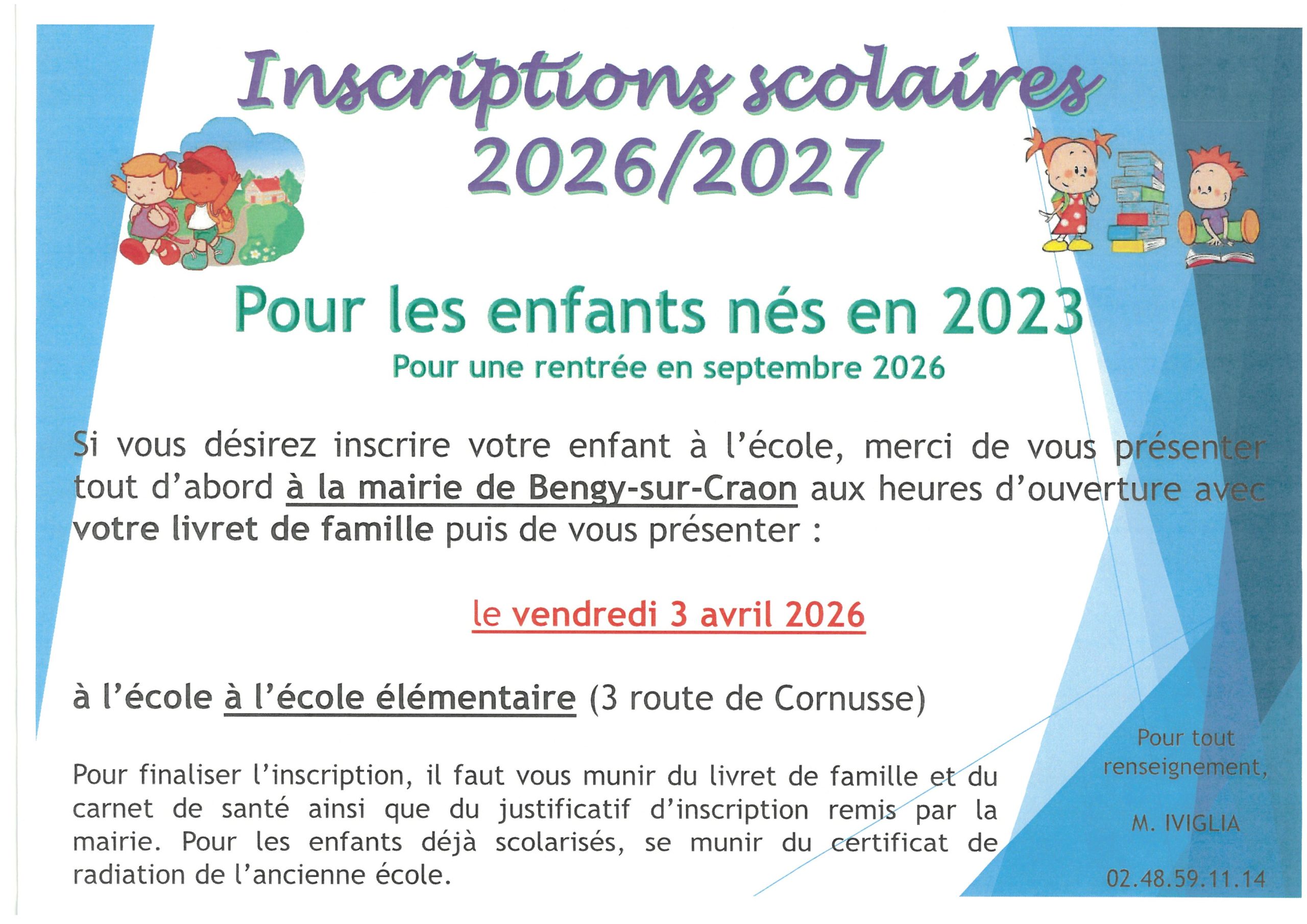 INSCRIPTION SCOLAIRES 2026-2027